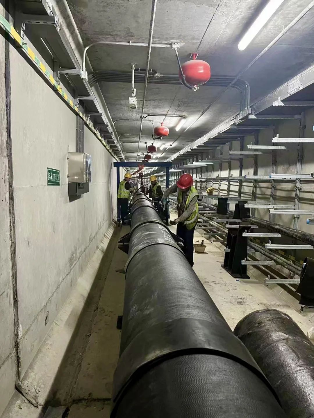 綜合管廊供水管網(wǎng)工程于今年3月份啟動,總投資700多萬元,在管廊運營管理單位和相關(guān)部門的指導(dǎo)下,施工單位結(jié)合實際制定施工方案、創(chuàng)新施工方法,專門定做適合地下管廊作業(yè)使用的小型龍門吊和水平運輸工具,同時上足人力,確保材料轉(zhuǎn)運入廊不受影響,從而克服了作業(yè)空間狹窄、材料轉(zhuǎn)運吊裝等困難,確保了項目安全、有序完成。進(jìn)入管廊可以看到,一條直徑DN400的球墨鑄鐵管道被穩(wěn)穩(wěn)安裝固定在管廊底部基座上,管道兩端將分別與迎賓大道、編鐘大道供水主管網(wǎng)連通,管道通水后城南片區(qū)供水將形成環(huán)狀管網(wǎng),可有效緩解片區(qū)供水壓力不均衡的現(xiàn)狀,將為城南片區(qū)供水服務(wù)及后期開發(fā)建設(shè)提供堅實保障。