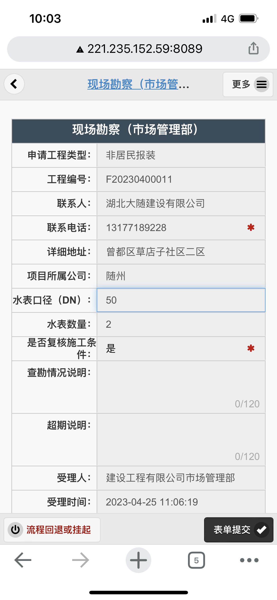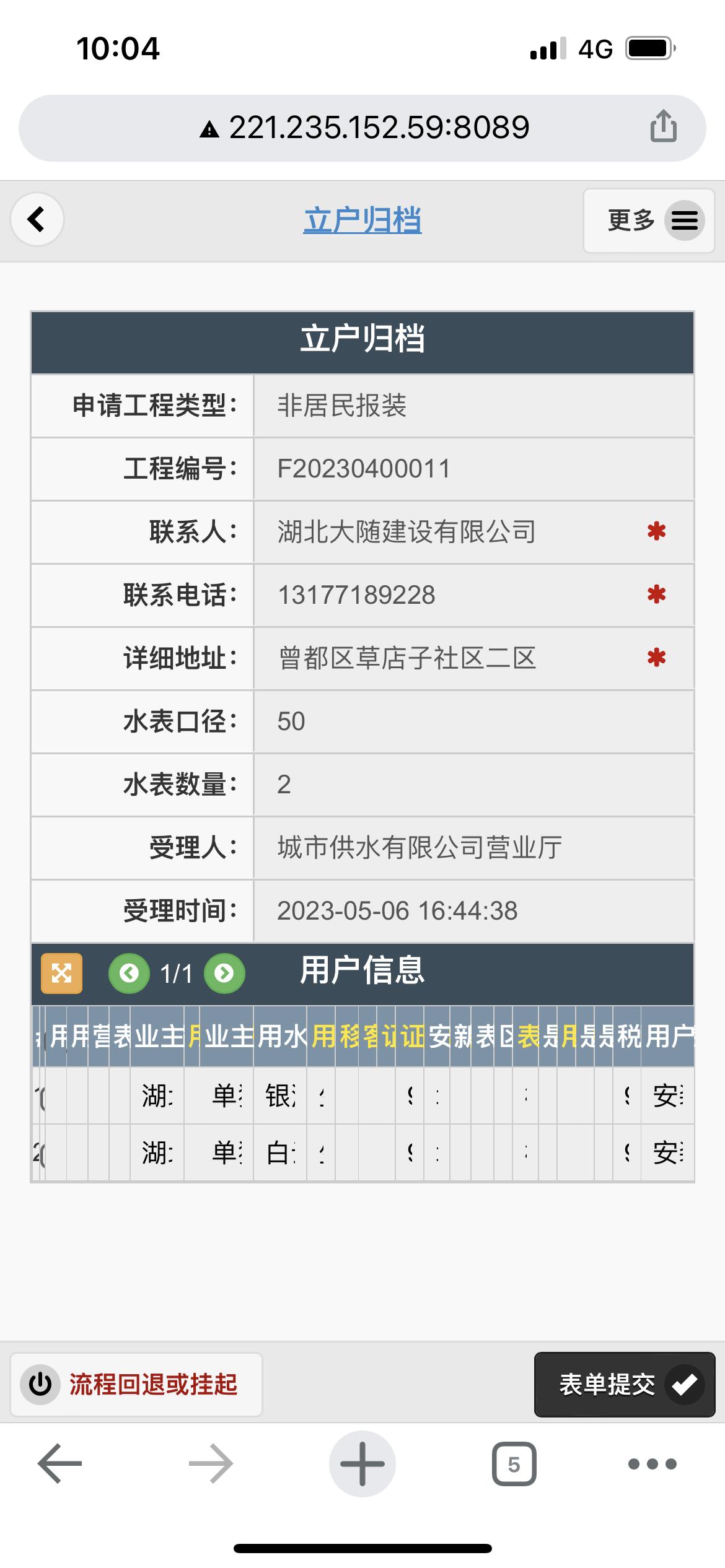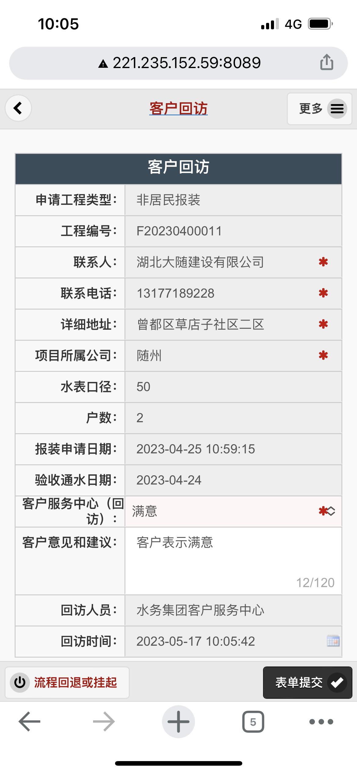 二、應(yīng)用案例及實際操作界面截圖(包含用水報裝、現(xiàn)場勘查、預(yù)算方案、工程施工、驗收通水、客戶回訪等功能)