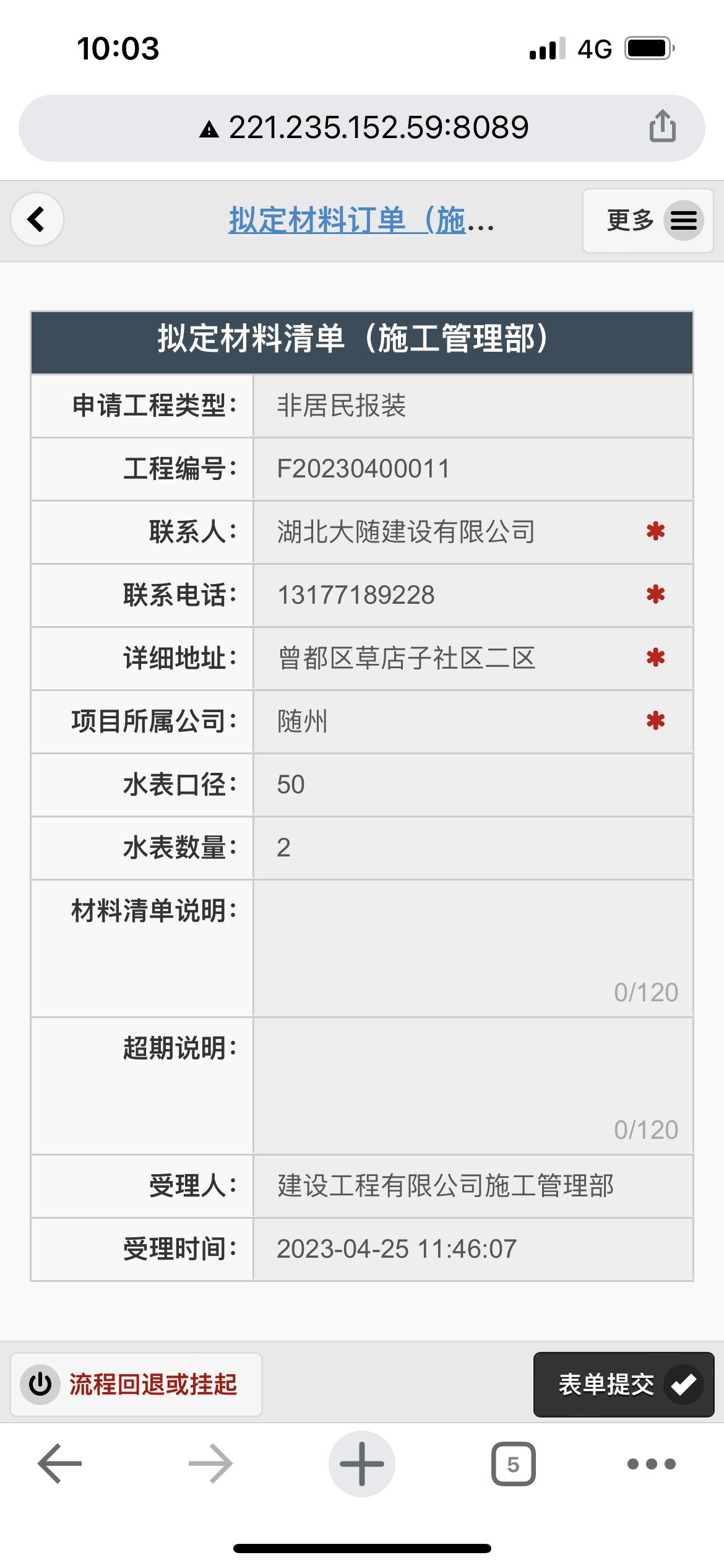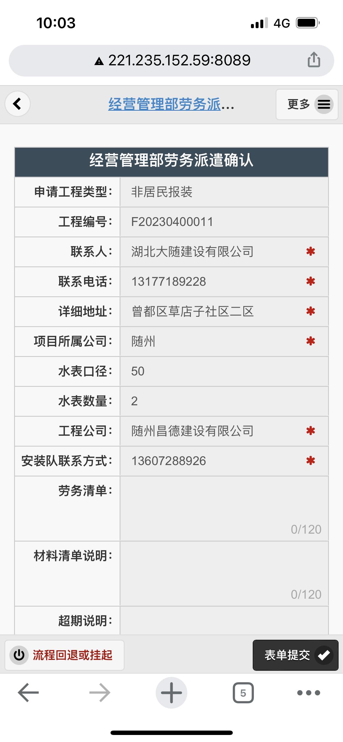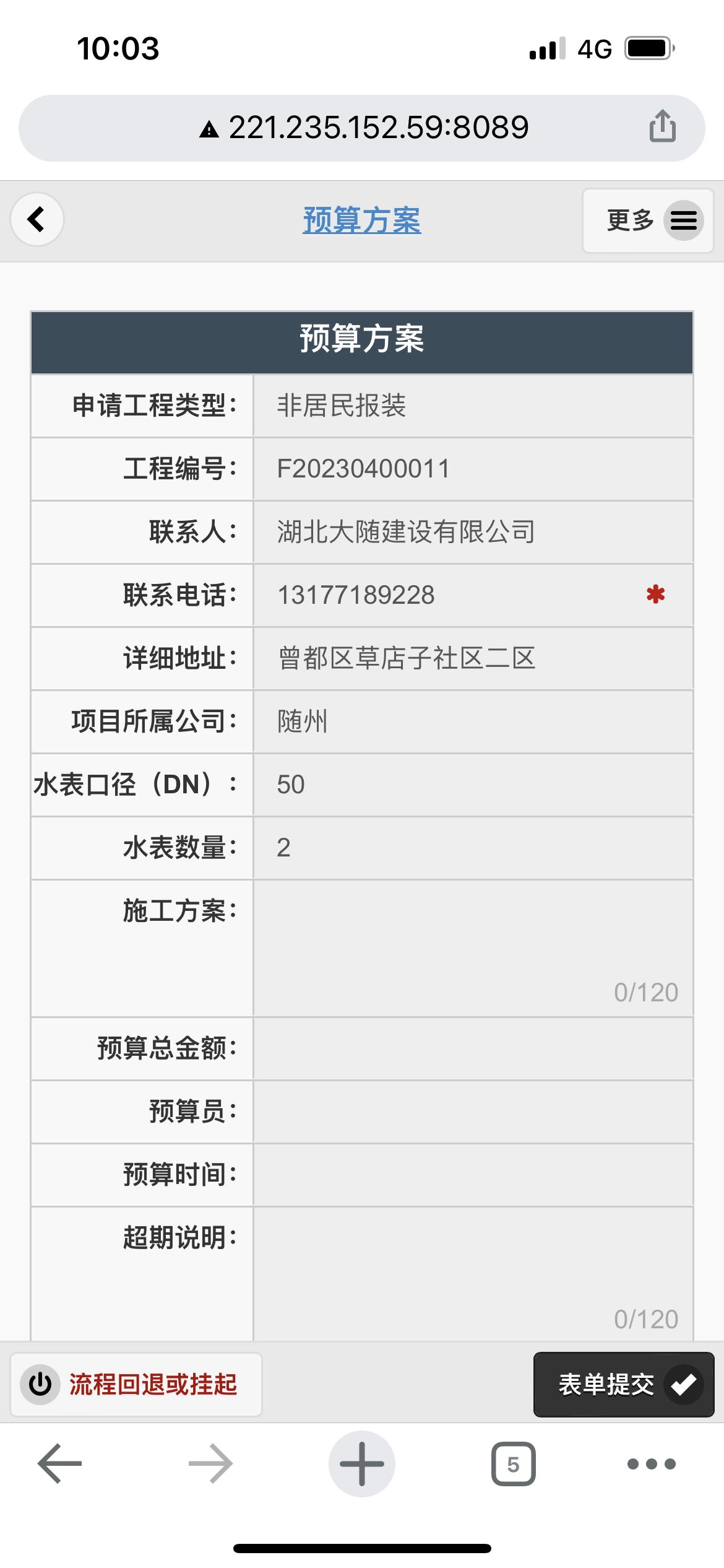 二、應(yīng)用案例及實際操作界面截圖(包含用水報裝、現(xiàn)場勘查、預(yù)算方案、工程施工、驗收通水、客戶回訪等功能)