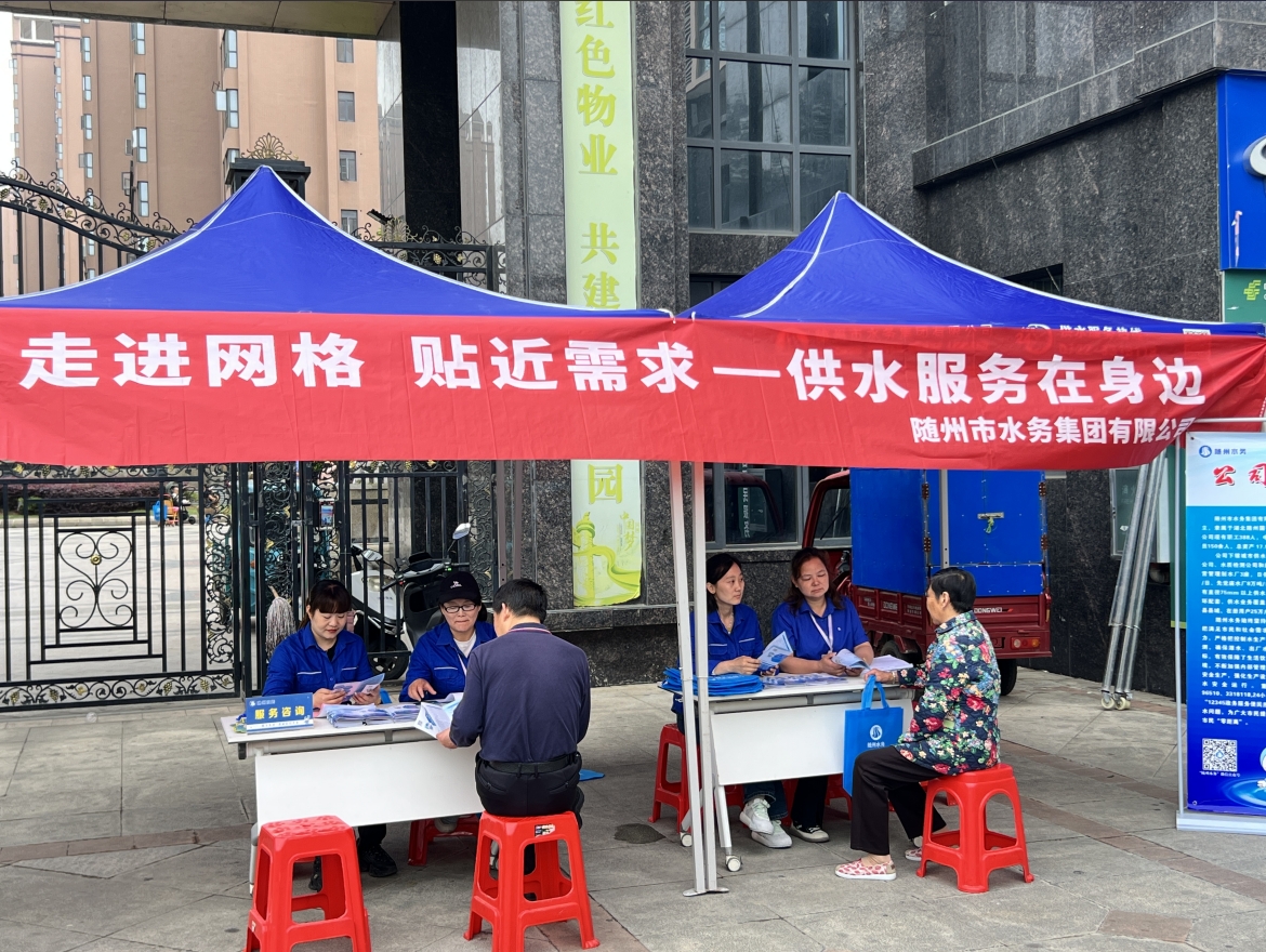 為進(jìn)一步貼近群眾用水生活,滿足群眾用水需求,提升供水服務(wù)水平和質(zhì)量,4月24日,隨州市水務(wù)集團(tuán)組織各子公司來(lái)到御山墅小區(qū)開(kāi)展走進(jìn)網(wǎng)格 貼近需求—供水服務(wù)在身邊的宣傳活動(dòng)。