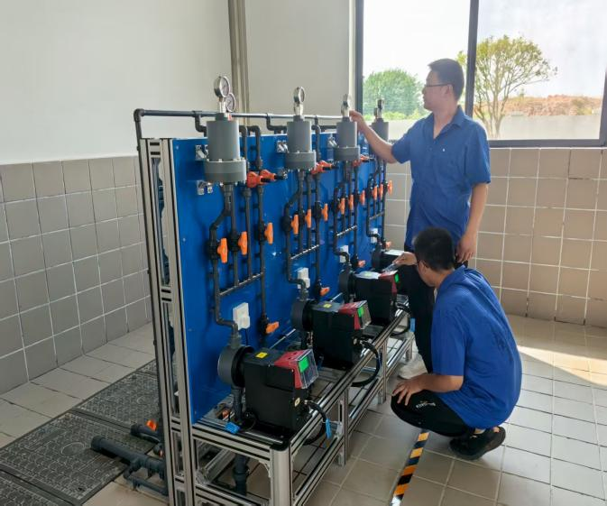 在運行保障方面,水廠精準(zhǔn)發(fā)力。運行班組加強核心設(shè)施巡檢頻次,對送水泵房、加藥間、濾池等關(guān)鍵區(qū)域細(xì)致排查,動態(tài)消除設(shè)備隱患;通過科學(xué)調(diào)度實現(xiàn)清水池夜間蓄水,確保早高峰水位充足,保障日間足量供水。針對供水量持續(xù)上升態(tài)勢,水廠提前儲備應(yīng)急物資與設(shè)備,新增活性炭及投加裝置,為水質(zhì)突變應(yīng)急處置筑牢防線。